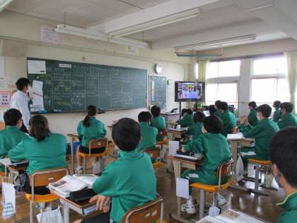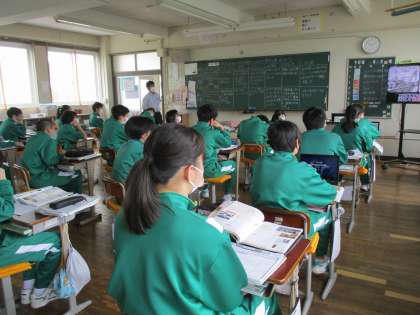 黒板には、生徒の字で、「欧米諸国との関係」、「中国との関係」などについて書かれていました。