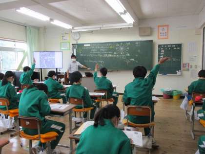 2年生が、社会科の学習で、地形図の読み取り方を学んでいました。