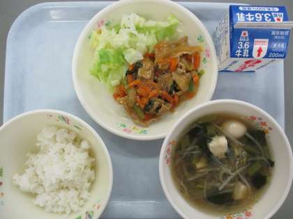ご飯 牛乳 スタミナ焼き肉 ボイルドキャベツ はるさめスープ です。