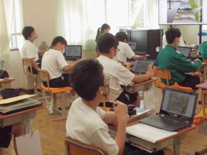 クロームブックを使って、温暖化がもたらす世界の災害について考えます。