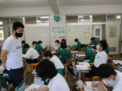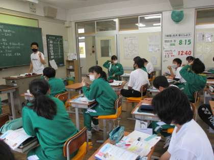 1年生が保健体育の授業で「健康的な食生活を送るにはどうすればよいのだろう」という学習をしていました。担当教員から、「意外と果物が不足しているかもしれないね」という言葉がありました。うなずいている生徒もいました。