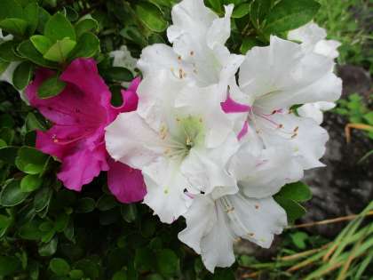 昨日に引き続き、紅白の花を咲かせるツツジの写真を掲載します。