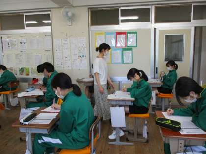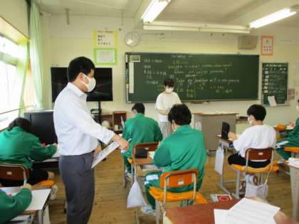2年生が英語の授業でテスト直しをしていました。