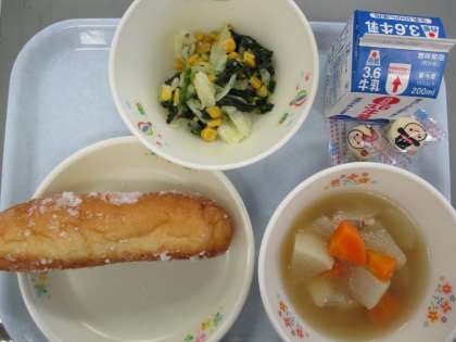 ロールパン あげパン 牛乳 ポトフ キャベツとコーンのソテー ラムネ型チーズ