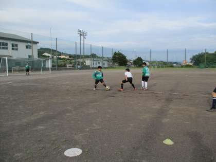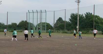 サッカー部が、試合形式の練習をしていました。パス交換がはやく「うまい!!」と思いました。