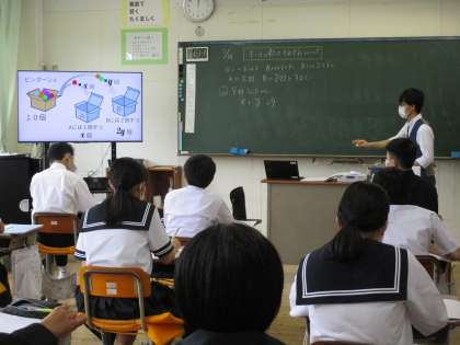 2年生が数学で「連立方程式」の導入的な学習をしていました。