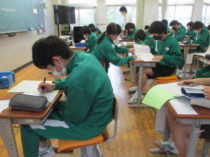 3年生は学活の時間を使って期末テストの計画を立てていました。
