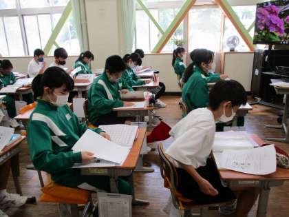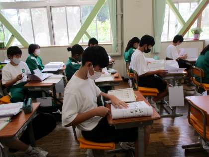 1年生が英語の授業でヒヤリングの学習をしていました。