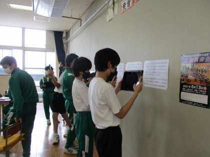 クロームブックを使って、歌い方のポイントを撮影していました。