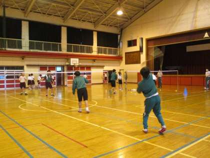 しめはバドミントン部! お願い! はいっ! パシッ よっしゃ〜! ナイス〜!