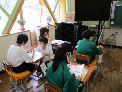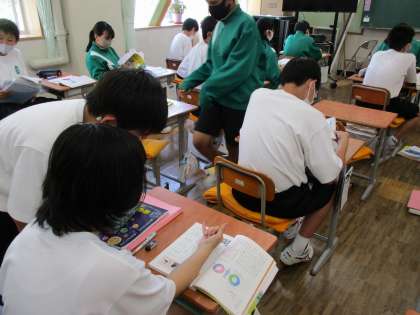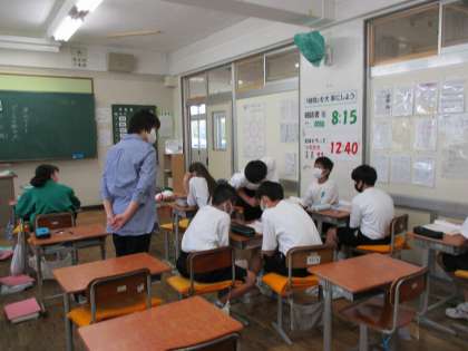 1年生が国語の授業で期末テストのテスト勉強をしていました。10分間程度。