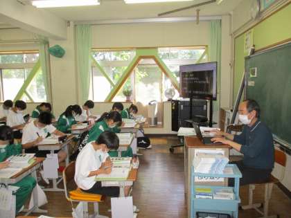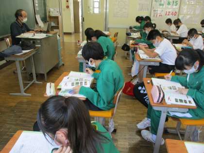 1年生が、理科で動物の勉強をしていました。特に「昆虫」と「軟体動物」について調べ学習をしていました。