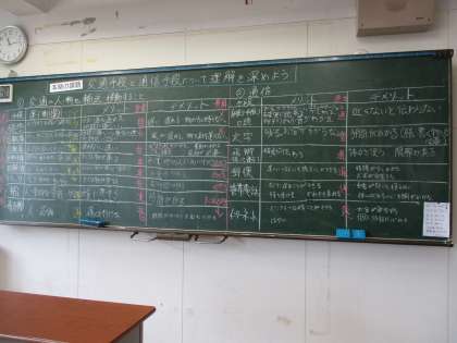 2年生が社会科の授業で「交通手段と通信手段のメリット・デメリット」について学びました。授業の最後には、子供たちの文字で素敵な黒板ができあがりました。