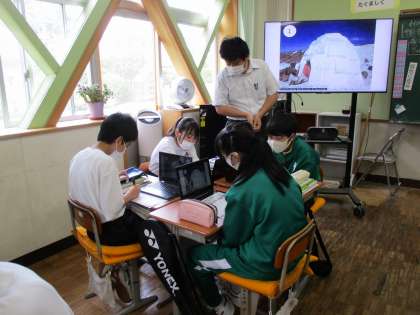 1年生が、世界地理の授業で「どのような場所でどのような生活をしているのか」という学習をしていました。