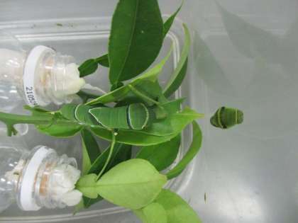 で、はらぺこあおむし三男が(三女かも)、脱皮して?、