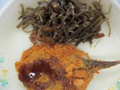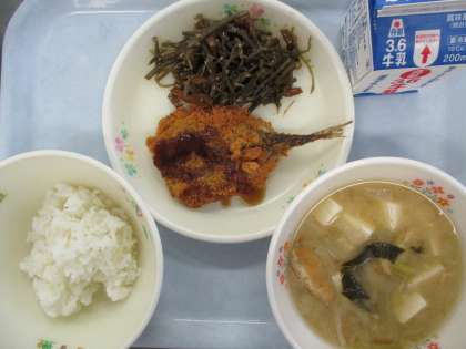 ご飯 牛乳 鯵のフライ きんぴらごぼう 新たまねぎの味噌汁