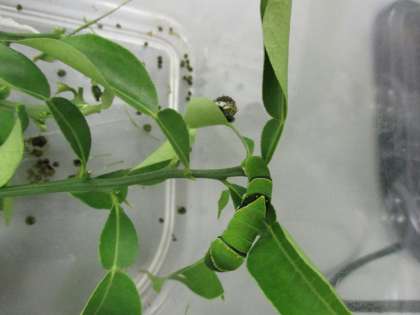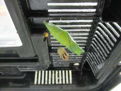そして、2番目の子が、本日、さなぎになりました(1枚目の写真)。