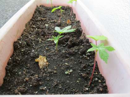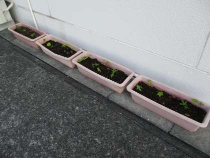 事務の先生が、職員室の南側に「ハナオクラ」の苗を植えてくださいました。