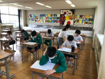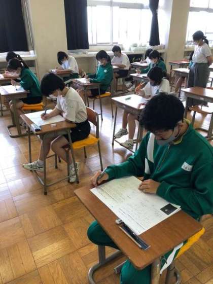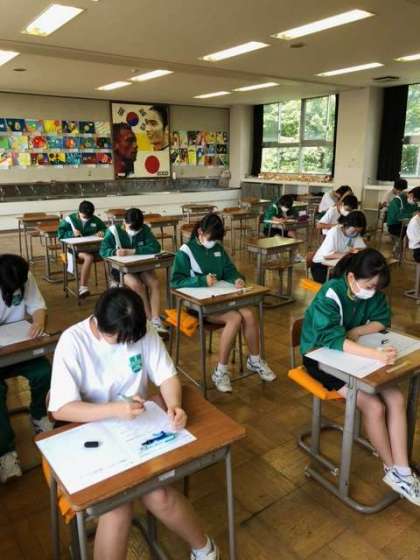2年A組は4時間目に美術の期末テストに取り組んでいます。