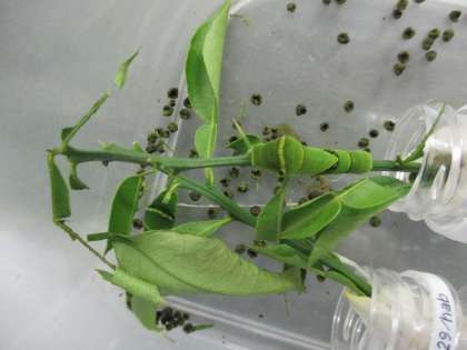 三男くんと四男くんは、みどり色の幼虫になって、食欲旺盛です。