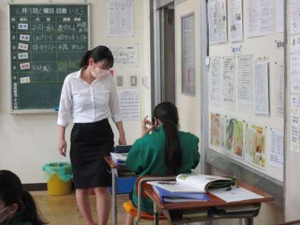 そうなんです、今日の道徳の授業は教育実習生さんが指導してくださいました。