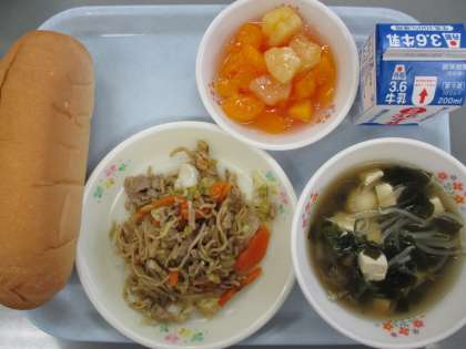 セワリロールパン 牛乳 焼きそば わかめスープ アセロラフルーツ です。