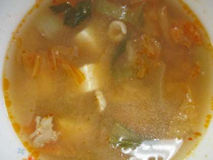 キムチスープ、辛いのかなあと思って食べたのですが、ほどよい辛さで、ホッとしました。おいしくいただきました。