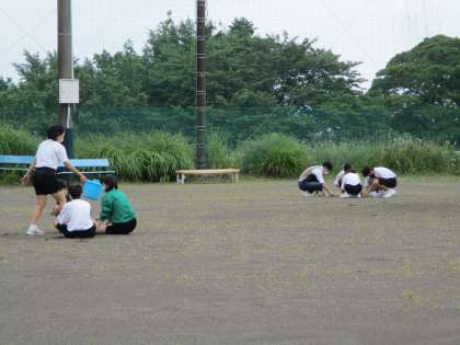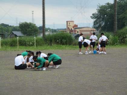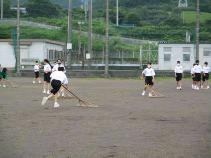 グランドの草を取りました。
