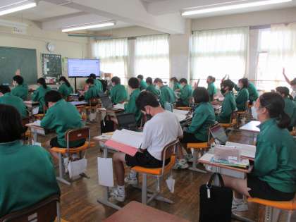 その問いに対して手を挙げる生徒が何人もいました。その様子を表したのが、3枚目の写真です。
