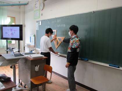 黒板に出て、実際に三角定規を動かすことで、理解を深めていこうとする場面もありました。