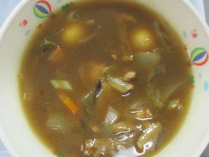 カレーの汁がとばないように、あわてないで食べま〜す。