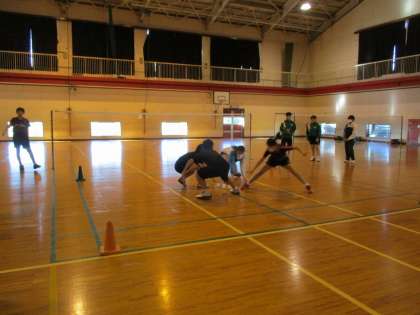 そして、部員の皆さんと一緒に、シャトルを自分の陣地へ3つ持ってくるというゲームも行いました。実際にやってみることで、バドミントン部の方の動きが軽快といいますか俊敏といいますか・・・実感しました。