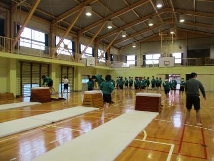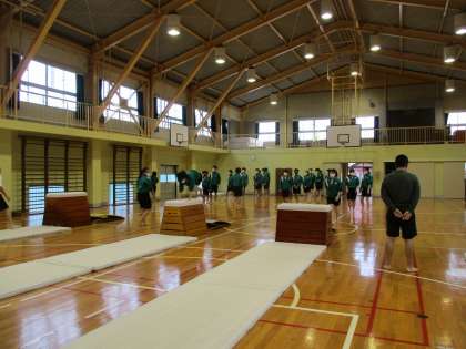 それにしても、跳び箱を縦にして、閉脚跳びとは・・・