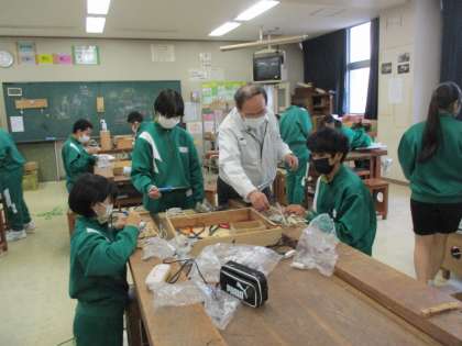 はんだごてで、はんだをとかし、はんだごてをはなすことで、はんだがかたまる
