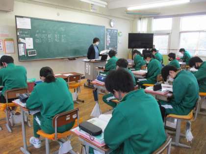 3年生が国語の授業で「奥の細道」の中の「平泉」についての学習をしていました。