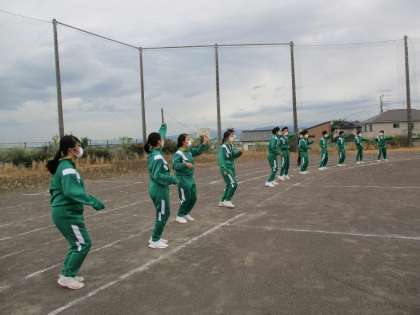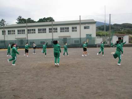 外では応援の練習です。