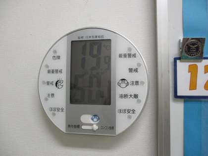 気温19.9度、湿度50%でした。 このところ、朝の保健室前の温度は、だいたい19度台ですかね。