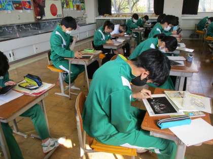 3年生が美術の授業で「アートグラス」についての学習をしていました。