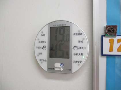 気温19.0度、湿度45%でした。保健室前の室温であり、湿度です。
