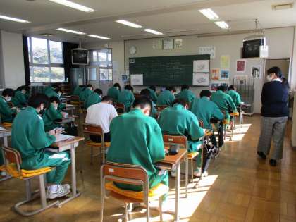 生徒たちが手を見つめているのは、テストの中に手をデッサンするという内容が盛り込まれているからです。