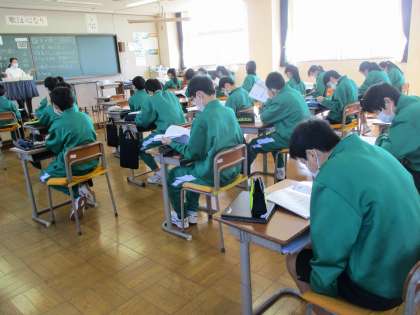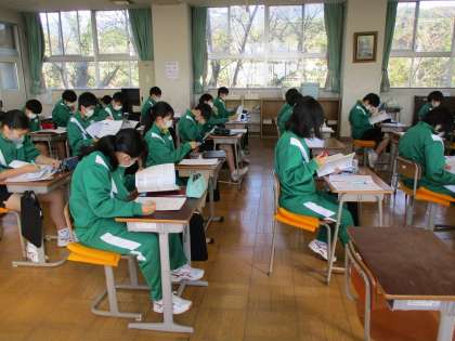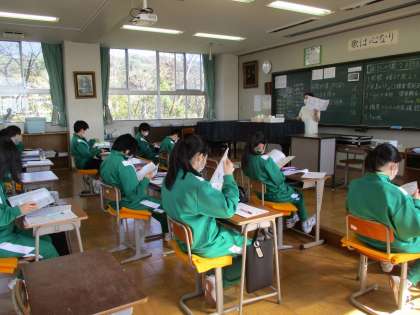 1年生が音楽の授業でテストに向けた勉強をしていました。