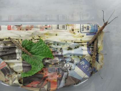 寒さ対策として、夜は、ろうかよりもややあたたかい場所へ虫かご移動しています。