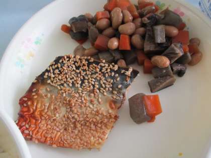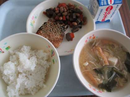ご飯 牛乳 さばの南部焼き ごもく煮豆 豆腐と白菜の味噌汁 です。