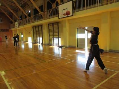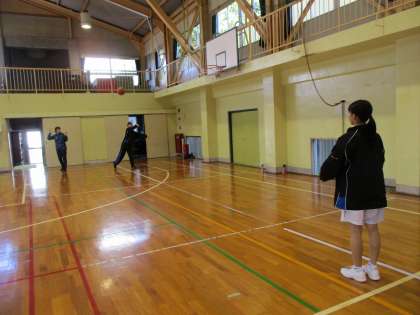 バスケ部がロングパスの練習をしていました。
