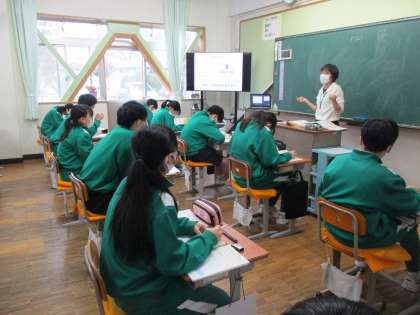 1年生が家庭科の授業で「魚の旬」について学習していました。