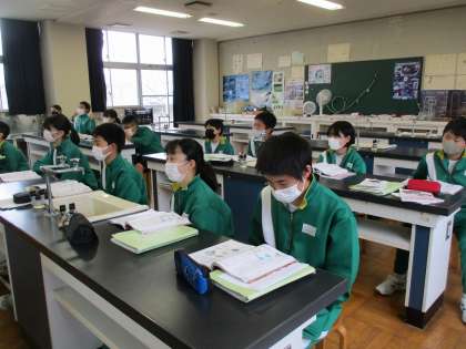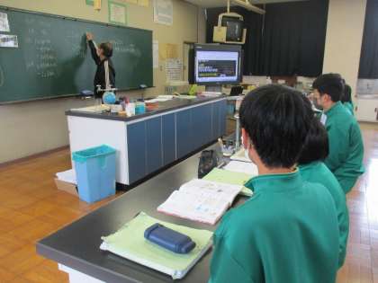 2年生が、理科の授業で「水が得た熱量と上昇温度の関係」についての学習をしていました。
