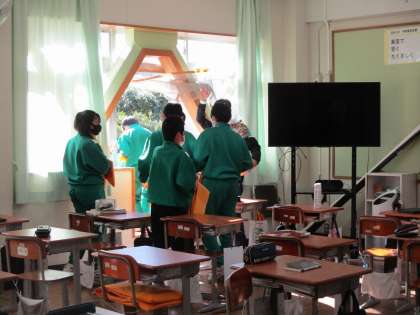 今日、昼休みに、予告なしの避難訓練を行いました。