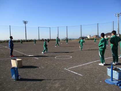 先生が投げるゴロやフライ(打球)を見て、どう走ればいいのか、どこへ投げればいいのかということを学んでいました。