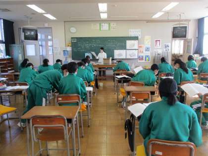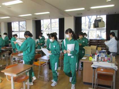 1年生が美術の授業でテストを返していました。