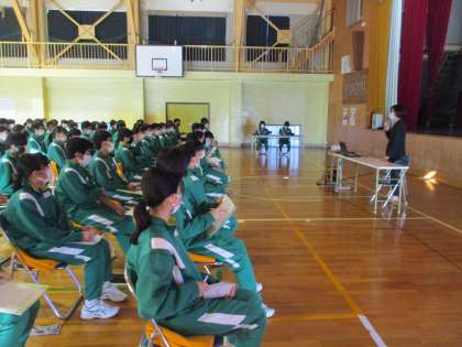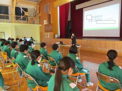1・2年生が総合的な学習の時間に、様々な職種の方から職業に関するお話を伺いました。